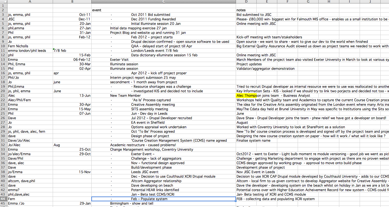 I haven't had time to do much freelance work recently, but I was interested in this project. I was commissioned by an IT team from a local art school (Falmouth University). They had just completed a year-long project on developing a system for standardising and organising course descriptors. It was a complex project with many twists and turns, people joining the team and different challenges along the way.