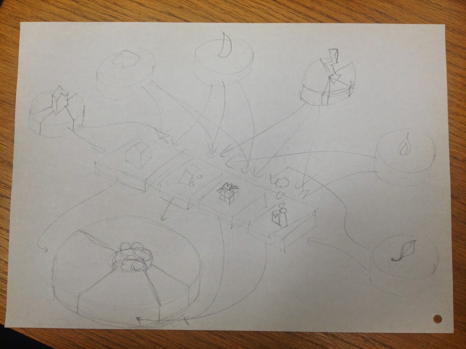 However, I was still bothered about the use of Sankey diagrams in isometric perspectives. Stefano Lari gets away with it in his diagram because the flows are either going diagonally down and right or down and left, so the distortion is not an issue. In mine, however, they were going in several different directions. I decided that the perspective was probably holding me back more than anything, and decided to try redrawing in plain old 2D: