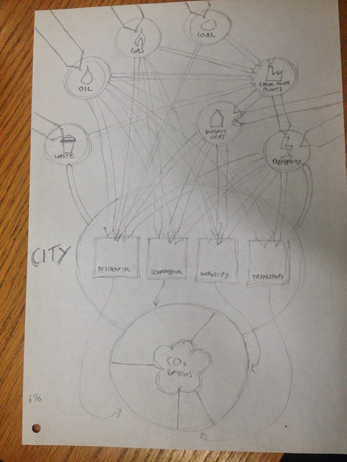 In the end, we couldn't get access to the data on CO2 emissions, but I think the diagram is a useful way of showing the quantity of different kinds of energy used by different cities. Possibly the most useful thing about the diagram is for powerpoint presentations. I found that we could switch between the different scenarios for the same city at different time points, and with different policies in place, and see how the energy flows changed.